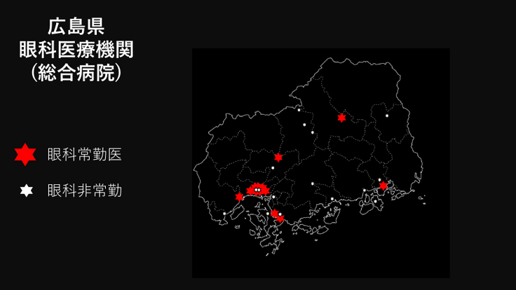 しかし、例えば広島県では山や島が多いことから、眼科へのアクセスが難しい地域も多く、「見えにくくないのに」眼科を受診するのは難しい状態です。
