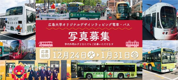 なお、広島大学では、プロジェクトの軌跡を記録として残していくためラッピング電車・バスの写真募集を1月31日まで行っています。