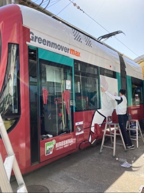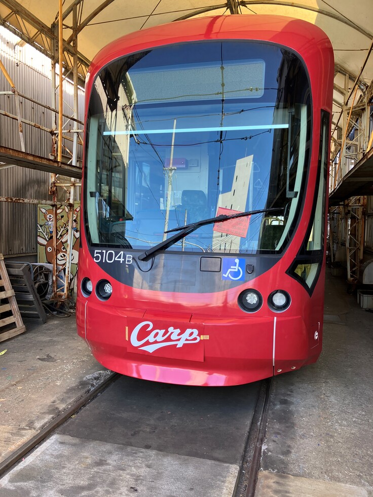 3月22日(水)より運行開始予定のカープ電車ですが、着々と姿をフルラッピング仕様に変わっていっております!