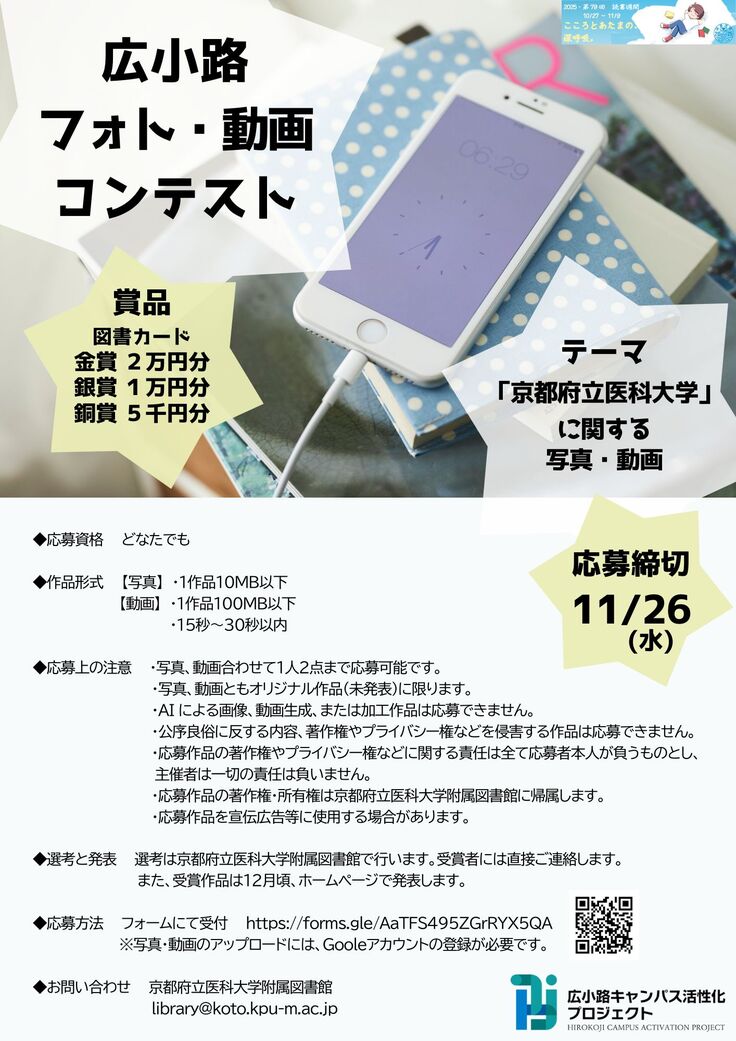 いつも京都府立医科大学「広小路キャンパス活性化プロジェクト」の活動にご理解とご協力いただき、誠にありがとうございます。
