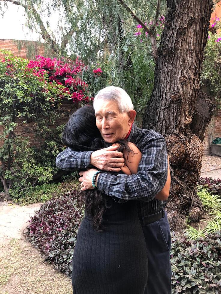 今年の2月、壁画を制作するアドリーとカルロスは、実と共に山下さんに会いに行き、被爆証言を聞きました。やはり繊細なアーティストとして強く心を揺さぶられ、同時に山下さんと心が通じ合った温かい出会いだったことは、写真を見ても伝わるかと思います。
