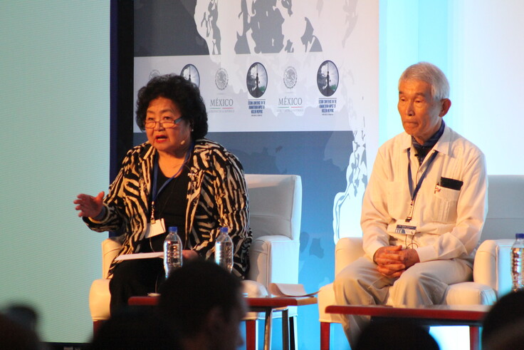 メキシコは国連で採択された核兵器禁止条約(2017年)の事前交渉で貢献しましたが、実はそこにも山下さんの姿があったのです。条約が採択される3年前、メキシコは「核兵器の人道的影響に関する第2回国際会議」を主催し、被団協の田中煕巳さんやカナダ在住のサーロー節子さんと共に、山下さんも被爆証言を行いました。