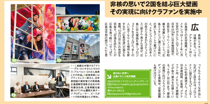 7月の記者会見で取材に来て下さった広島の情報誌「TJ HIROSHIMA」9月号で壁画プロジェクトが紹介されました!
