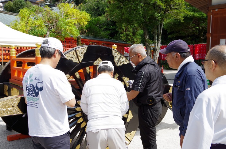 「大神輿」と「花車」の点検および試運転を、実行委員や