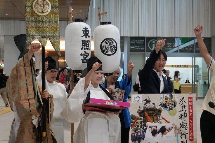 広島テレビさんのテレビ派「街かど伝言板」という有名なコーナーで、【広島神輿行列】のPRを