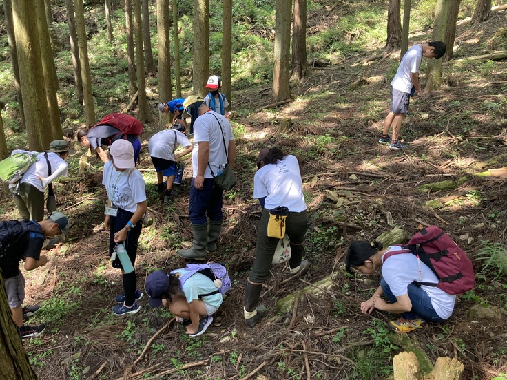 いよいよ交流会スタート!全員でヤマビルを探せ。