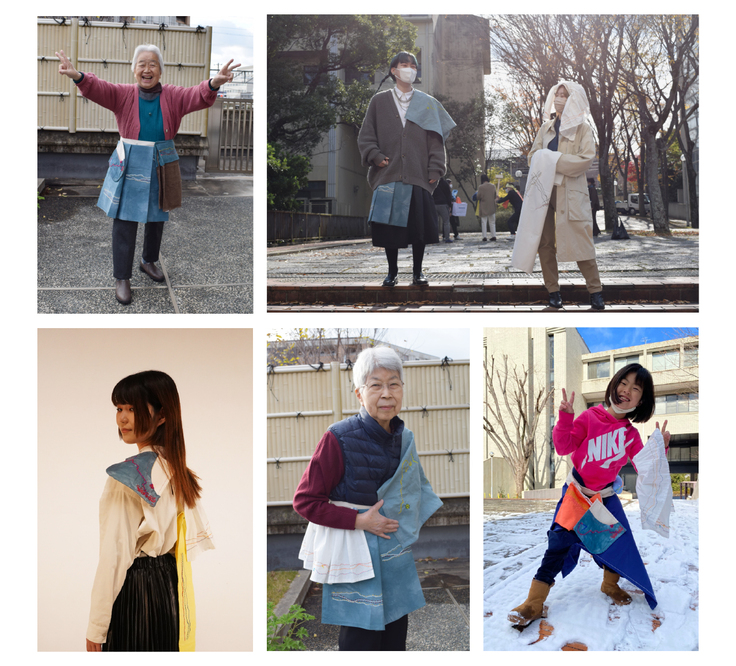 11月から約2ヶ月間、大学やコミュニティスペースに集まった人たちにまとう刺し子を着てもらい、撮影を行いました。