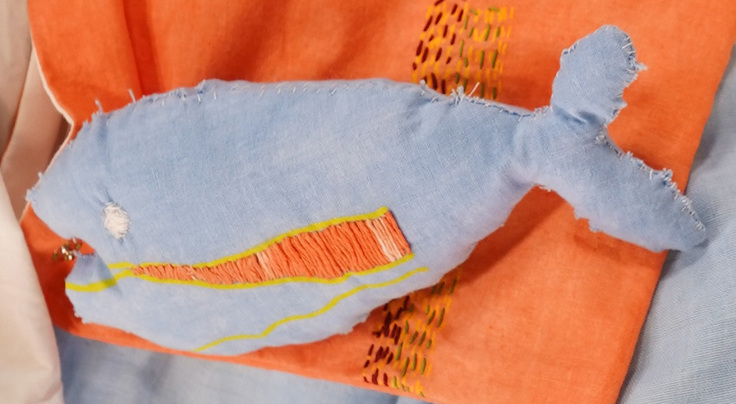 ③魚や動物、植物を刺し子するのが好きなメンバーの刺し子作品から着想を得ています。