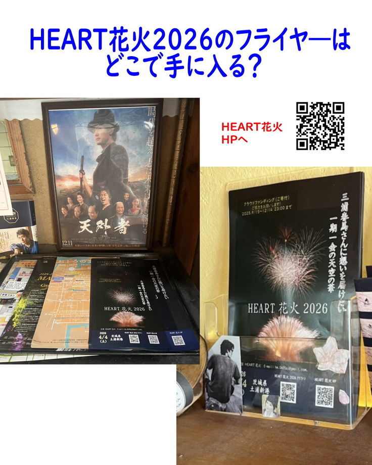全国の春友さんの協力を得て、HEART花火2026のフライヤーを各地に置いていただきました。