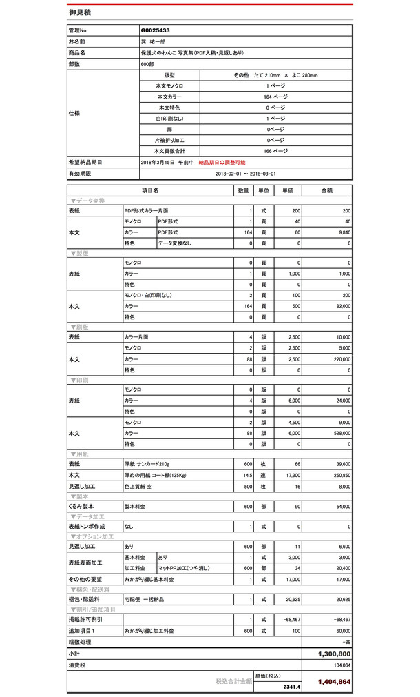 サンプルの内容の確認を行い、問題のないことを確認しましたので、これから本番の印刷製本の作業に入ってもらうことになりました。