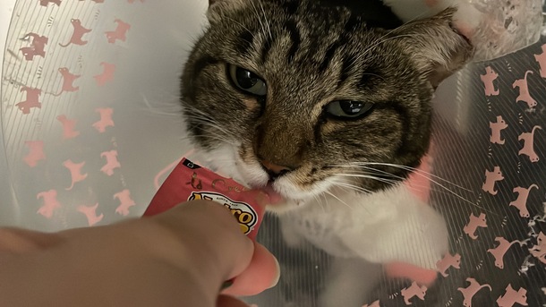 一旦点滴は明日で終わるそうなので家で食べてるカリカリを持参することに。これで食べてくれればいいが…食べてない割に体重は減っていなく3.75kgをキープしてるそう😅