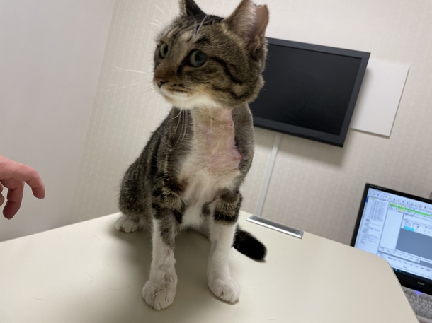 診察に行ってきました!抜糸はもう少し先になりそうです。理由としては腫瘍は鎖骨、頸静脈等を切除した場所が空洞になっていますが、その部分の筋肉の再生がまだ完全ではなく今だに空洞がありその部分に液が溜まっているので完全に再生し空洞がなくなれば良いそうです。動かなければ再生は早いそうですが動かないのは無理なので再生が遅いのは仕方ないとのことです。そのほか体重は3.54キロと増加していました!次回診察は1月10日です。