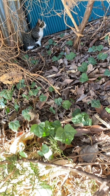 行方不明の猫ちゃんを探して歩いていたら、メスの地域猫ちゃんに出会いました。前足が腫れていて足がつけないようでした。餌やりさんが抗生剤を飲ませているとのこと。この時期は喧嘩したりが多くてこうした猫ちゃんが増えるとのこと。人に慣れているので里親さんがいたらいいのに・・とか病院に連れていきたいとかいろいろ複雑な気持ちになりました。他の保護団体が見守っているので今日は退散。がんばれ!!早くキズが治りますように・・