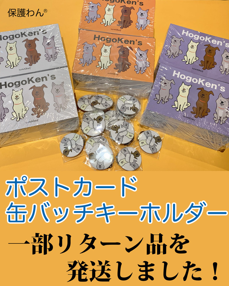 リターン品のポストカードと缶バッジが出来上がってきましたので、それぞれのコースの粗品として発送しました!
