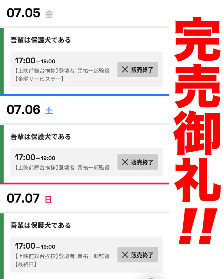 アップリンク吉祥寺での7月5日(金)~7日(日)のチケットがすべて完売しました!!