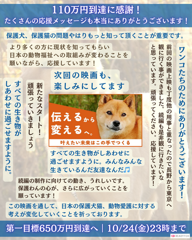 「保護犬問題に終止符を。核心に迫り、未来を変える映画の続編をみんなで」続編映画プロジェクトに、日々たくさんの応援をありがとうございます。