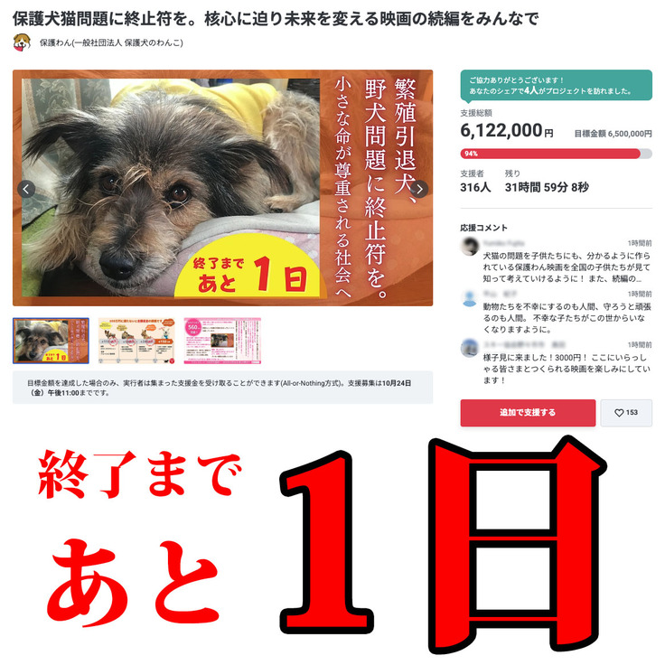 あなたのご支援やシェアが、ラスト1日の希望になります。