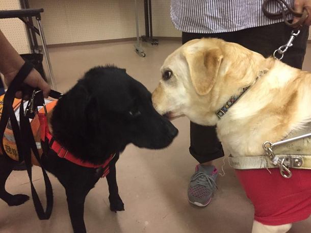 盲導犬がなんと二頭もお越し頂きました。聴導犬アーミも含め、