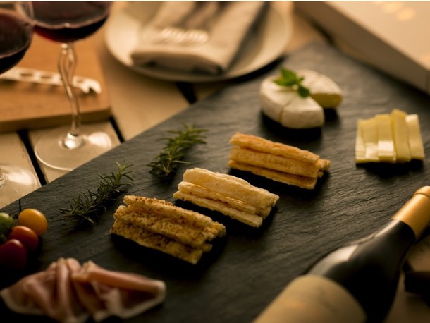 100%北海道産の生乳を使用し小麦粉等は使用しておらずチーズのみを独自の製法で焼き上げた商品。ワインのお供にぴったり!初めての食感に感動するお客様、続出でした。