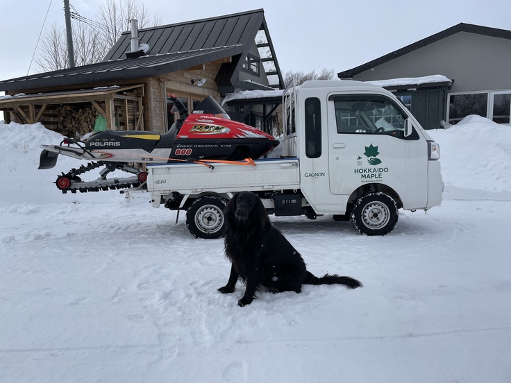 スノーモービルを使うことで、かなりの時間短縮と作業短縮となっております。