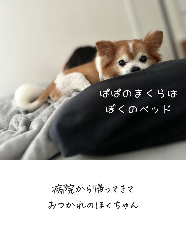帰ってからは疲れたのかぱぱの枕でごろごろ🐶