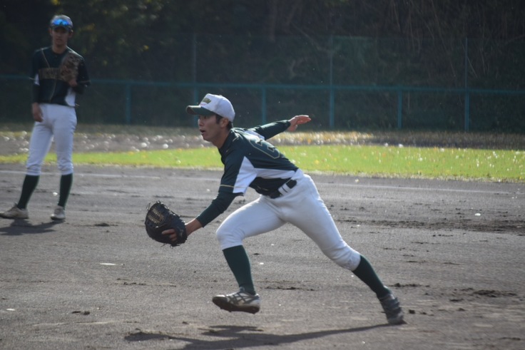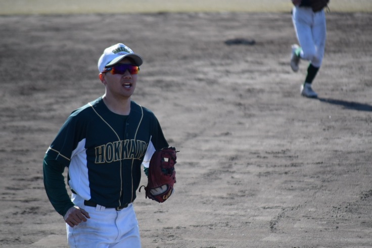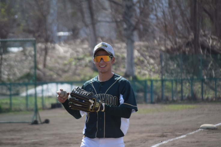 チームを代表するお調子者。北大野球部の練習場所であるA球場には隣にサークル会館なるものがあり、楽器の音やバンドの演奏などが聞こえてきてとても賑やかなのですが、合唱部かな?と思われるビブラートが聞こえてきたとき、その正体は大体合唱部ではなく彼の声です。マウンド上では普段とのギャップを感じる男らしい雄たけびが聞こえるのでしょうか?答え合わせは円山球場で⚾️