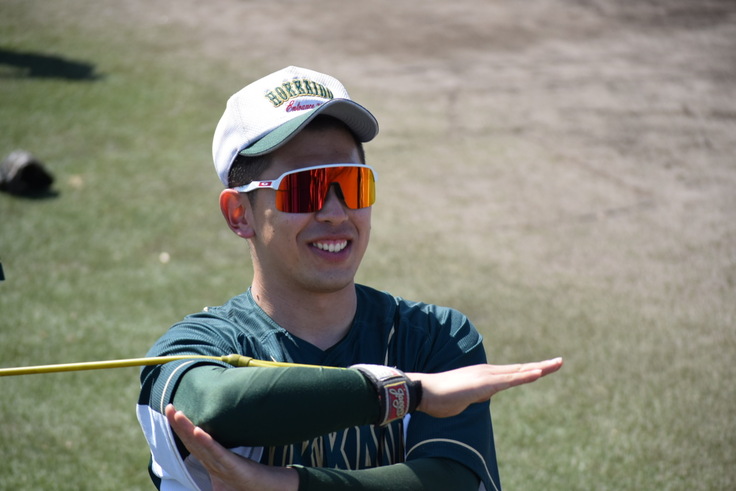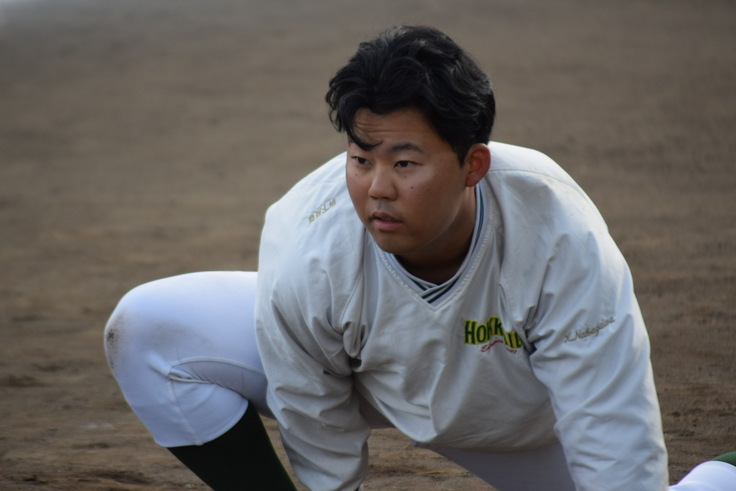 とにかくイカついこの男。サングラスをかけてバイクに乗る姿は全く野球部に見えません。出身は神奈川ですが、両親の影響で身についた関西弁から繰り出されるトーク術には目を見張るものがあります。北大野球部が誇る漫才師。見た目と話術に加え、バッティングにも半端ないイカつさを期待させてください😎