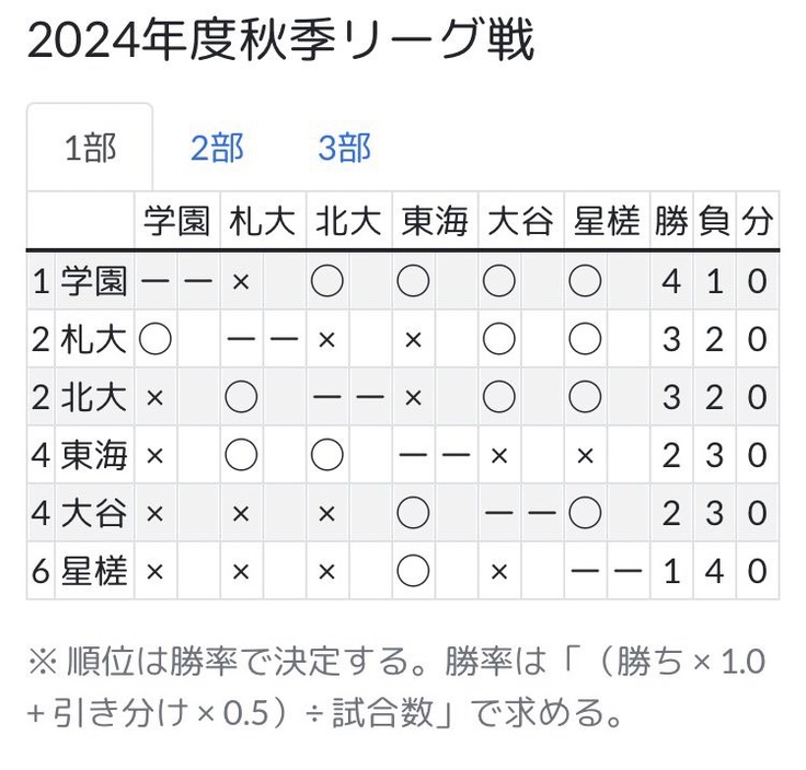 北大は現在、札幌大学と並び「2位」という結果になりました。