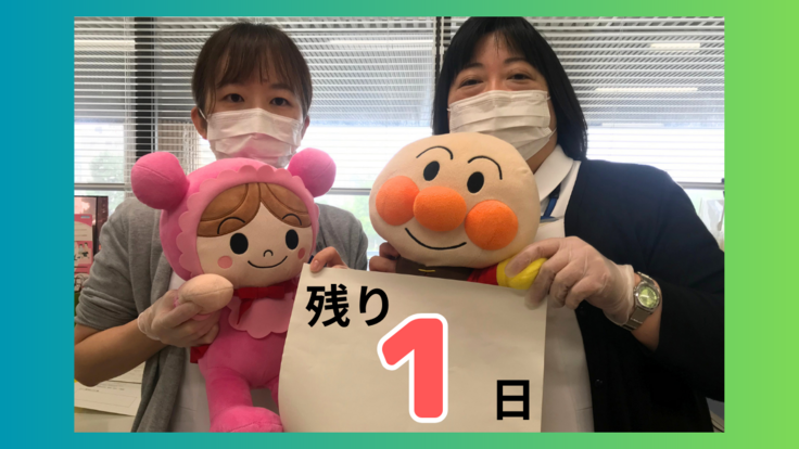 本日のカウントダウン写真は小児科外来の事務のお二人と看護師のお二人です。