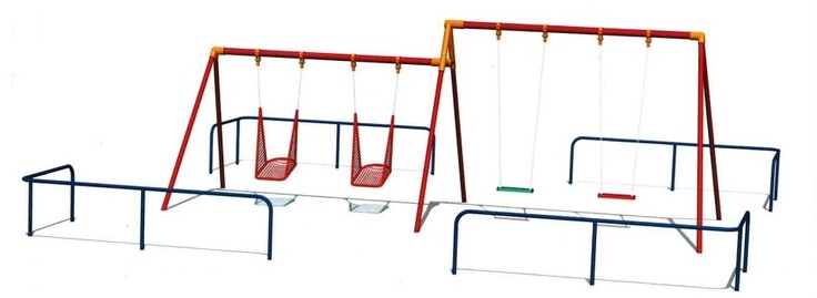 設置予定のブランコは4連のうち2連をアミタイプにしました。通常の学校遊具では見られない形です。