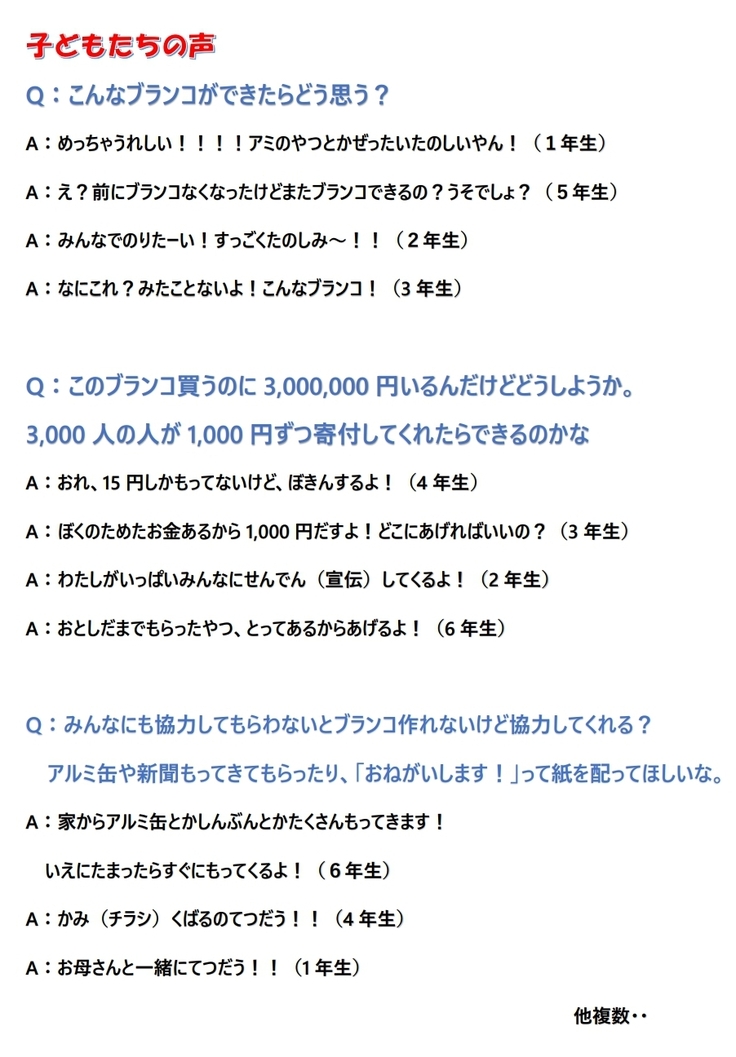 子どもたちはブランコ設置に対してどう思っているのか?