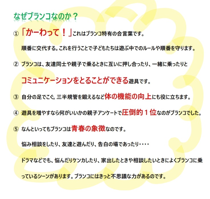 これはブランコに乗るときに子ども同士が、順番を守り、ゆずり合うための合言葉です。