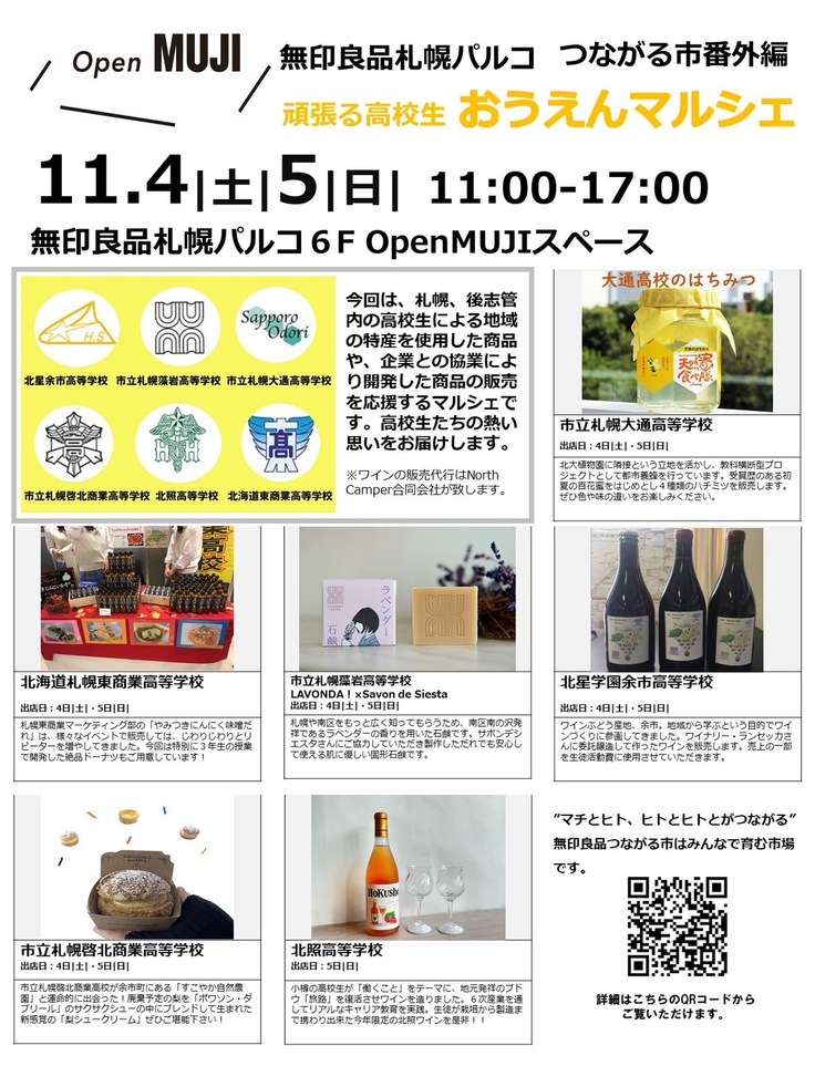 11/4,5に札幌パルコで行われる「頑張る高校生おうえんマルシェ」に本校ワインプロジェクトが出店します!