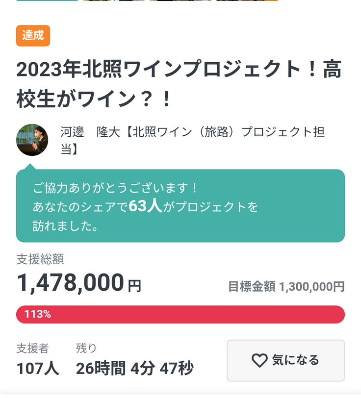 現在目標金額を上回る約148万円ものご支援していただいております!!