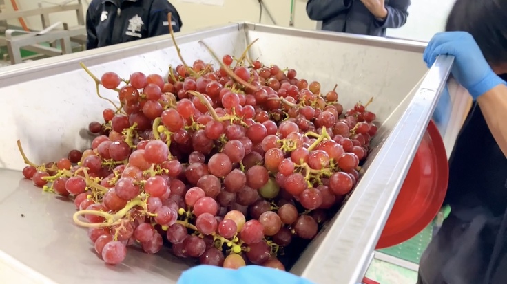北照で収穫したブドウ(旅路)を、ブドウの実と枝を分ける除梗作業と、果汁を絞る作業を体験させていただきました!