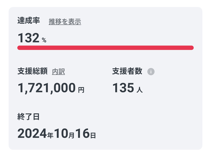 皆さんのおかげでサイト上の目標130万円を達成し、そして、私たちが過去の記録を超えたいと目標にしていた170万円も達成することができ、とても達成感を感じますし、感謝しております!