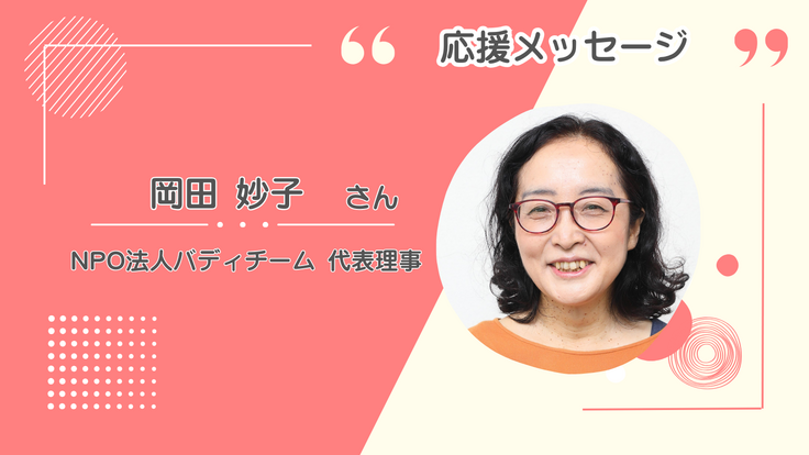 子育て支援・虐待防止を目的に、家庭訪問型の支援活動を継続しているNPO法人バディチームの岡田妙子代表から応援メッセージをいただきました。