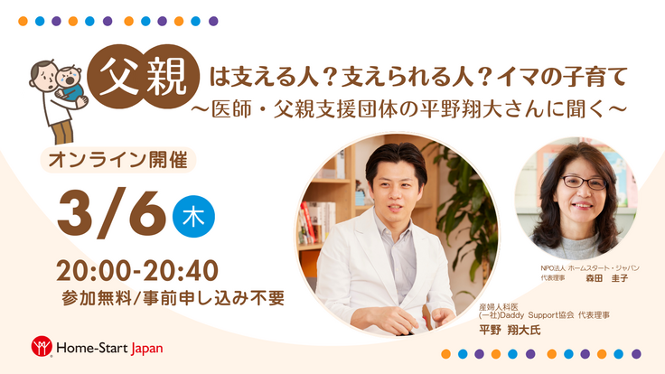 【動画を公開!】「父親の育児参画」を支援する団体代表・医師に聞くイベントを開催!(3/6)