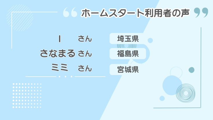 ホームスタートを利用した3人のママからの声を紹介させていただきます!