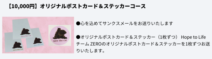 一口3,000円〜30万円までご予算に合わせて選択いただけます。こちらは、特別なリターン品をお届けしない代わりに、ご支援のほぼ全てをプロジェクトに充てさせていただくコースです。