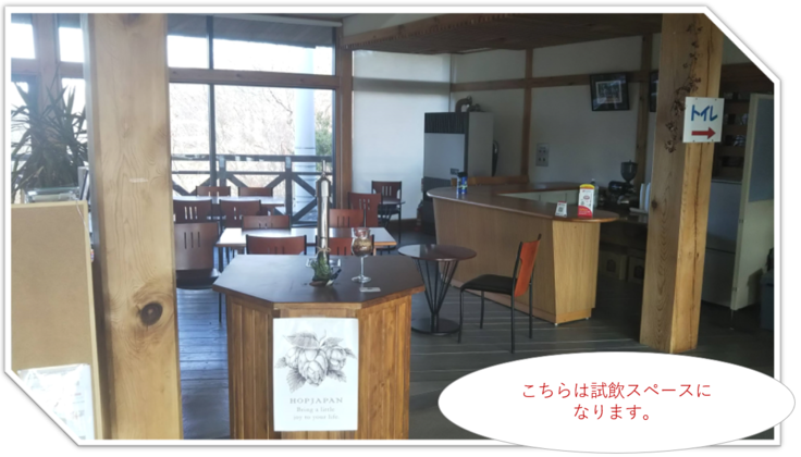 最後に、試飲スペースです。奥にあるデッキに座って飲むビールは最高ですよ!