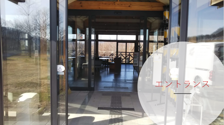 エントランスを入ると、つき当たりもガラス張りになっていてテラスがあります(下写真)