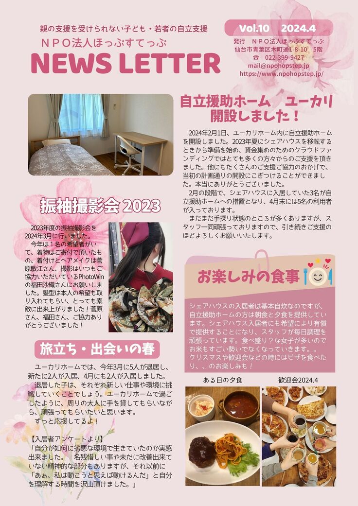 自立援助ホームが開設して2カ月が経ちました。