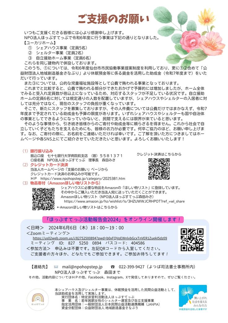 5,000円コース:お礼状・ニュースレター(PDF)