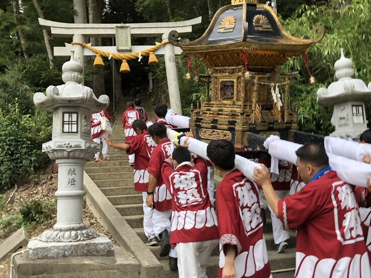 令和5年9月2日 鳥居修繕後 初めてお神輿がくぐることができました!