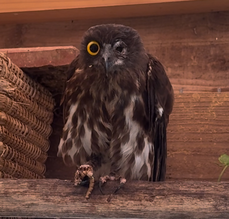 交通事故で片目を失い、2年間ちゅらんで過ごしたアオバズクのマフィン