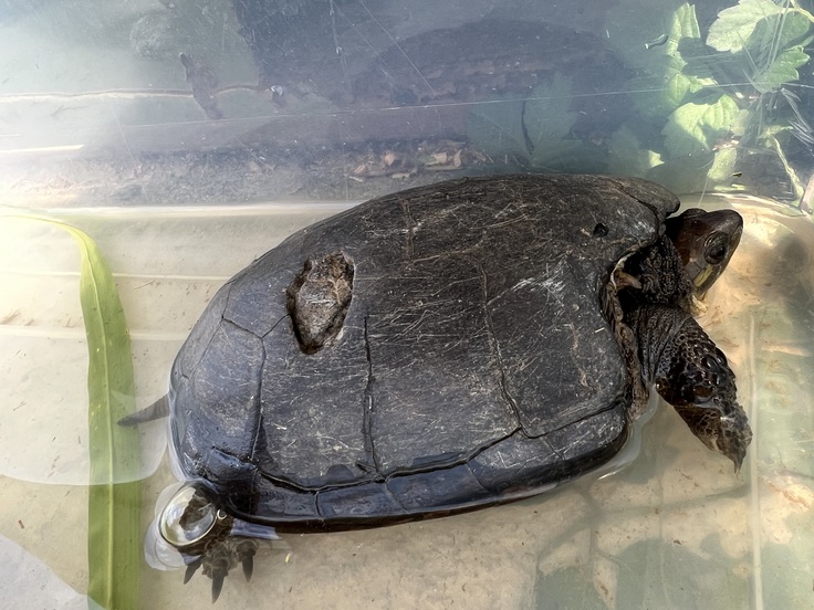 甲羅に穴が空いたミナミイシガメも保護しています