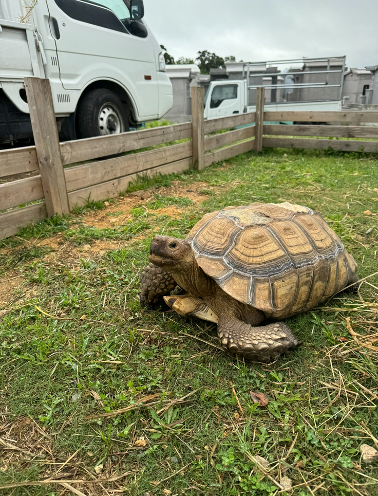 大きくなりすぎて飼えなくなったケヅメリクガメのターボくん、飼い主が飼育できる新居に引っ越し、めでたく家族の元へ戻ることができました
