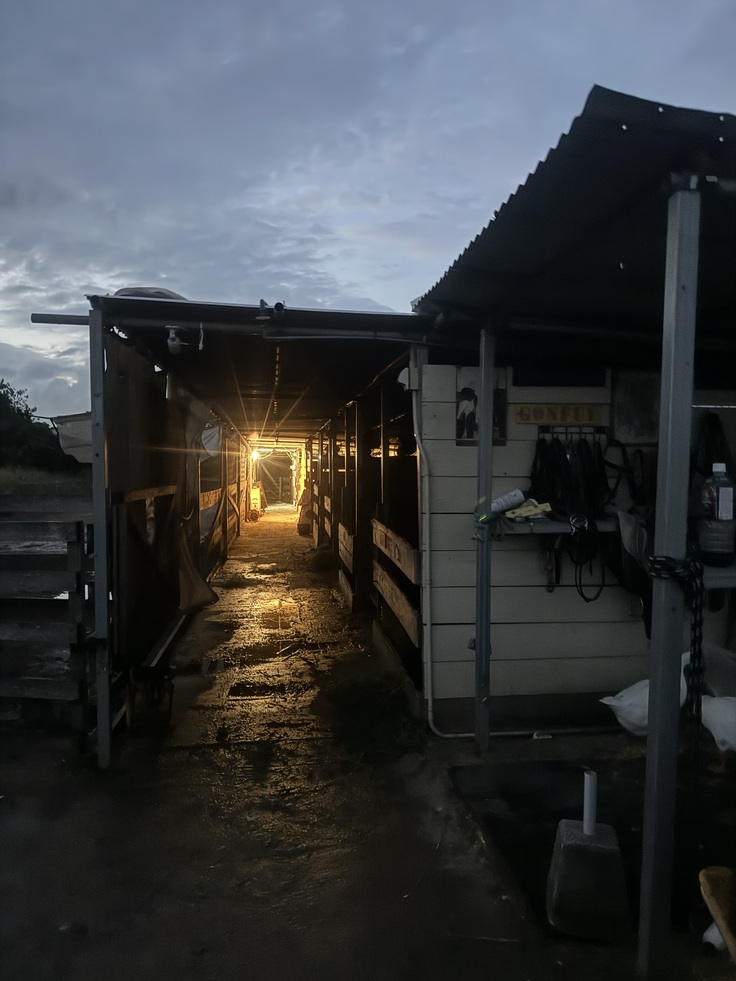 本日も無事に牧場作業か終わりました。雨が降っているため馬たちは夜間放牧ができず、夕飼いはそれぞれ馬房の中で済ませることになりました。
