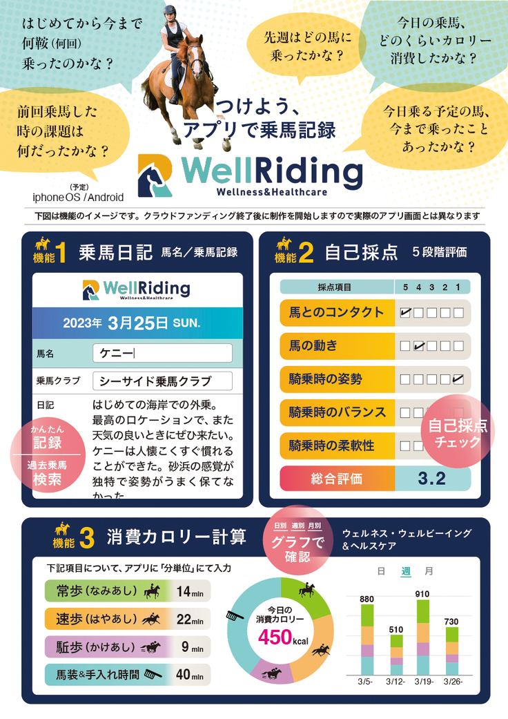 集まった資金は乗馬アプリ【WellRiding】の開発資金と致します